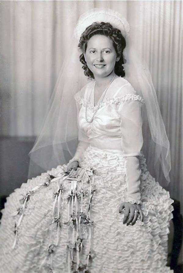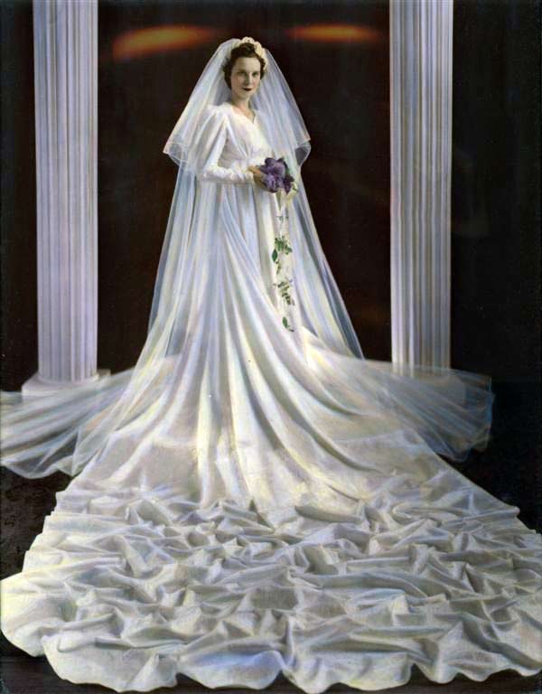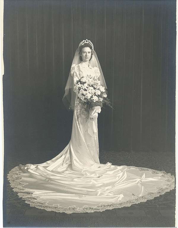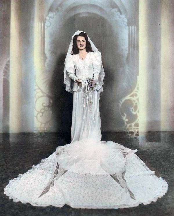 But don’t get me wrong, many wedding dresses in the 1940s had flowing trains that went on for days. Especially between 1940-1942.