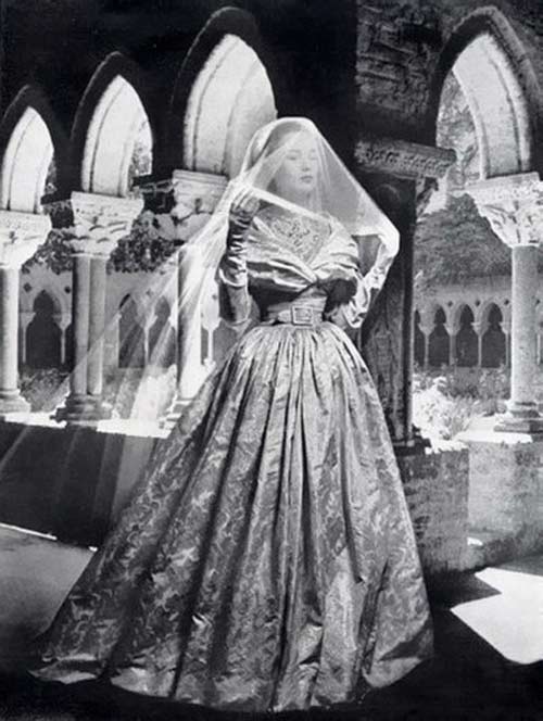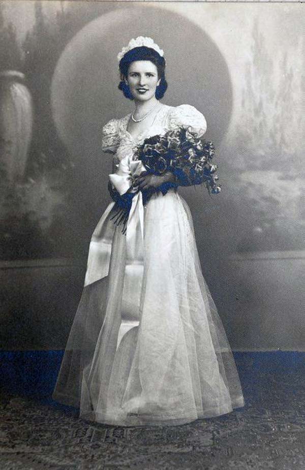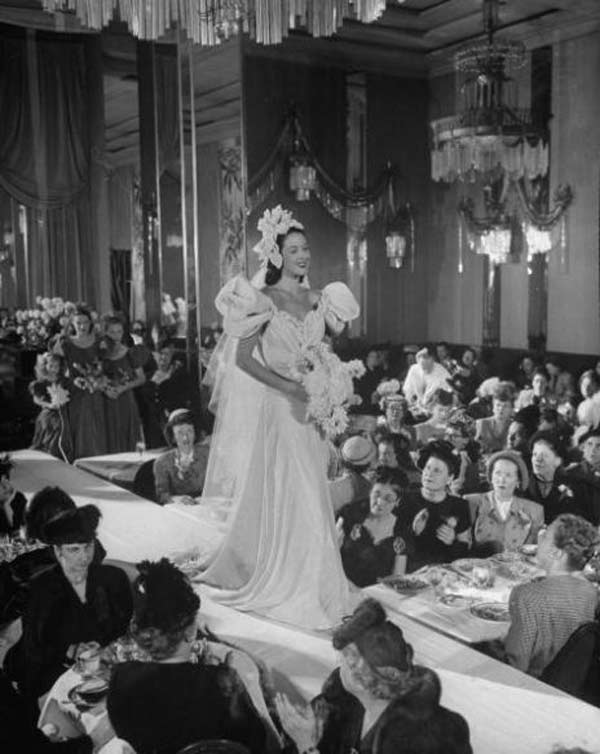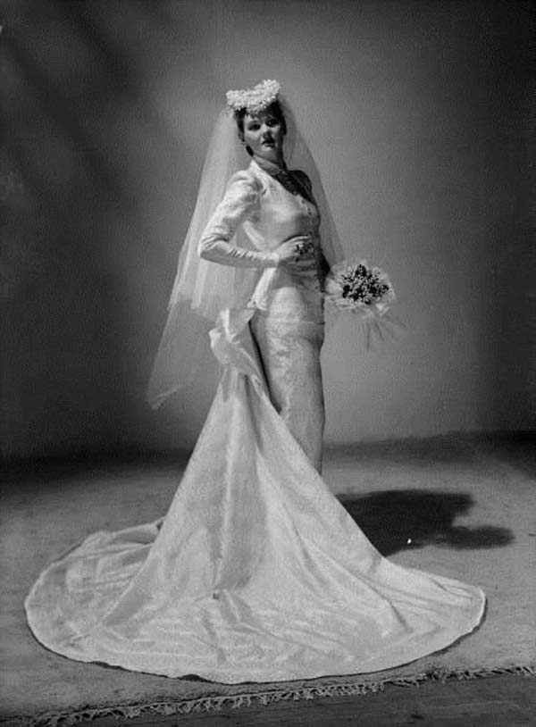 In the early 1940s, during the war, the fashion industry was heavily impacted by rationing. However, wedding dresses were exempt, meaning wedding gowns were free to be.