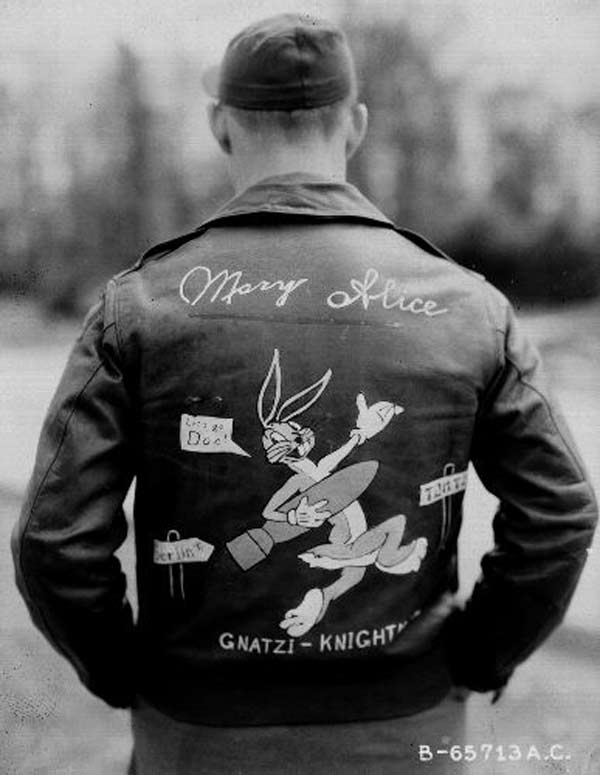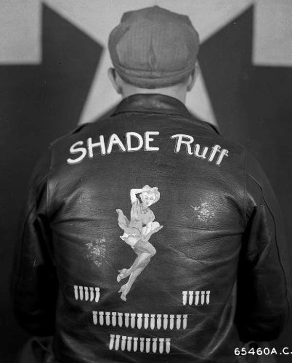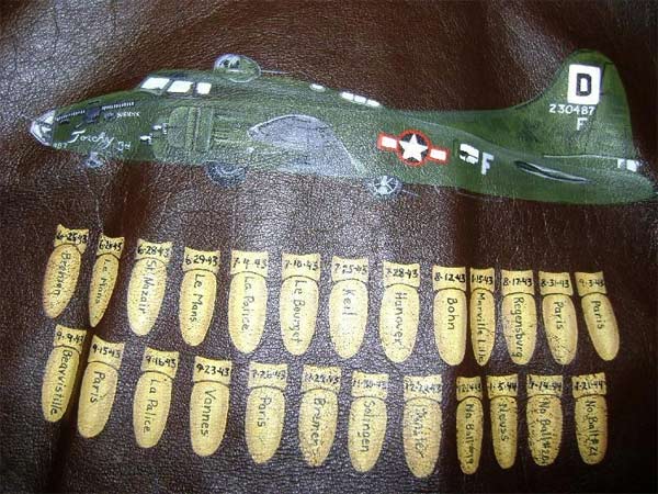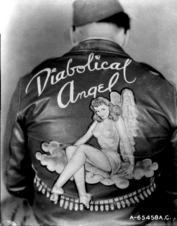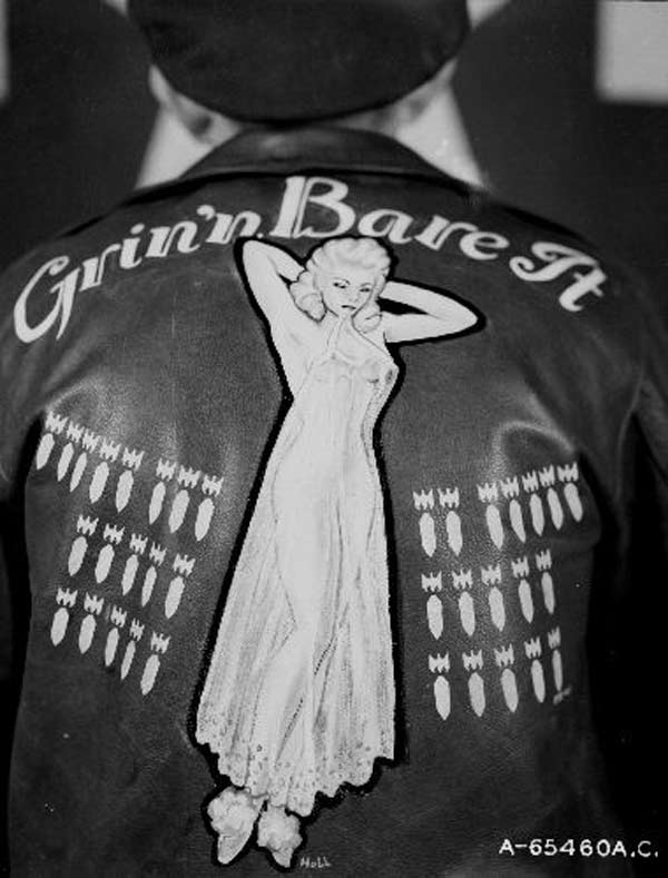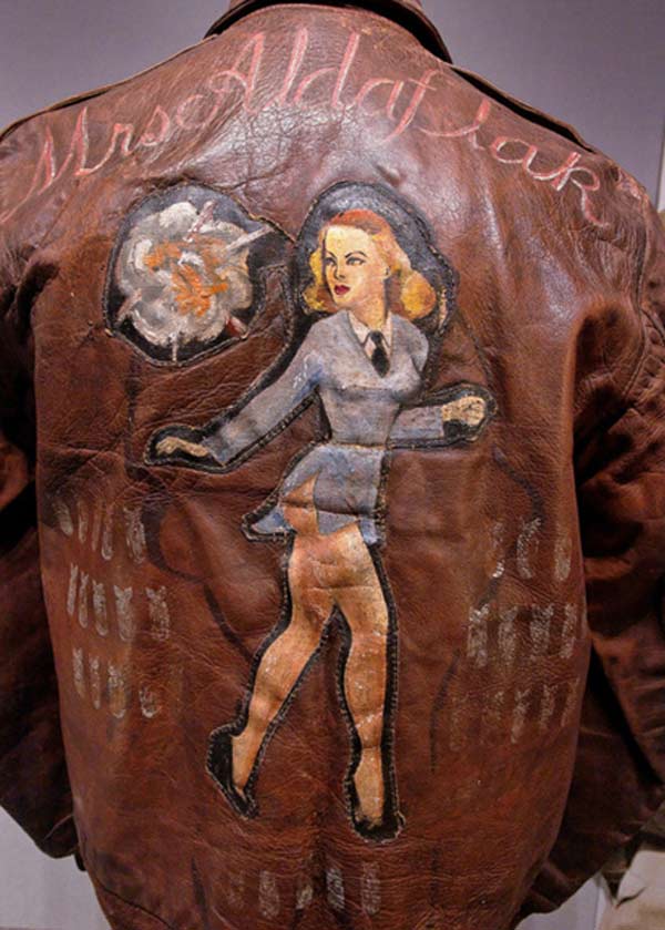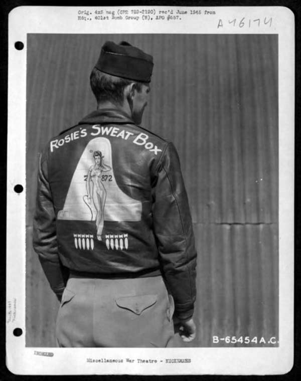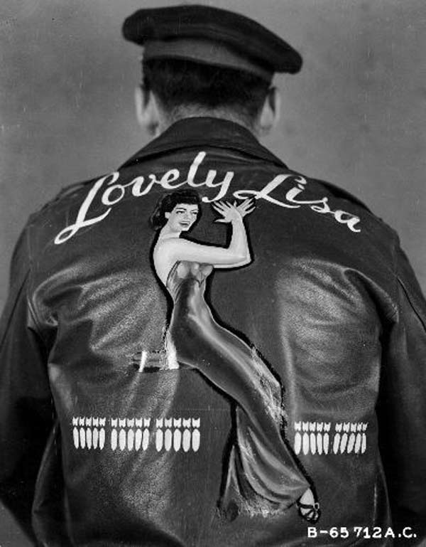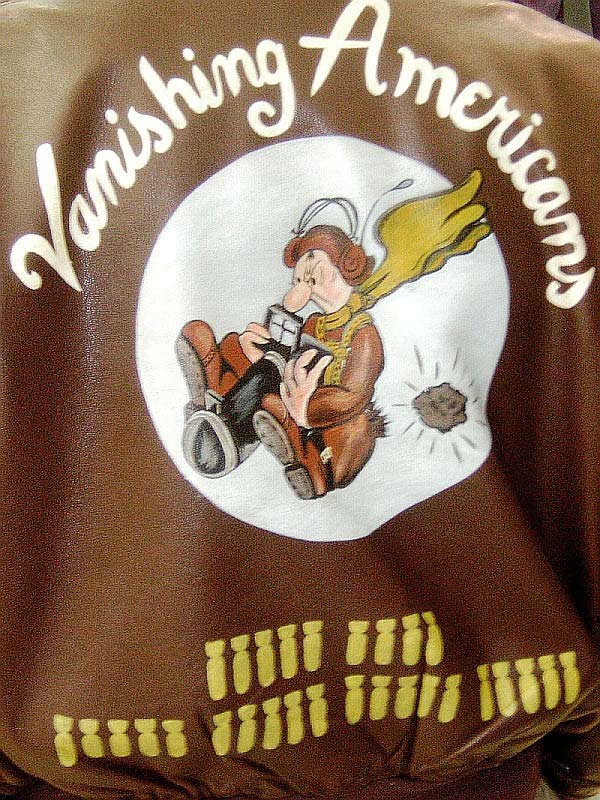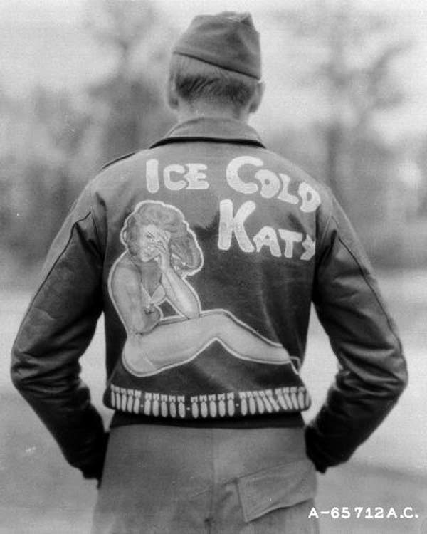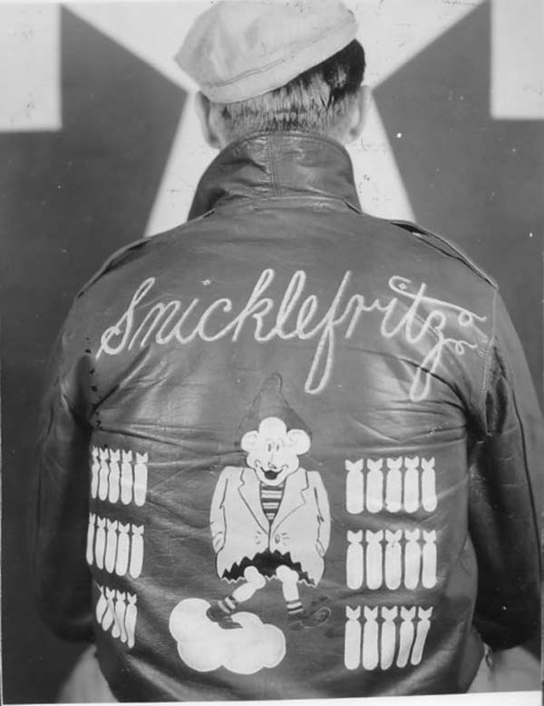 They often decorated their jackets with squadron patches and artwork painted on the back. We have an extensive A-2 flying jacket picture gallery below. Many of the paintings featured barely clothed women and hilarious words like: Twwwaaaaannnngg and Miss Wiss Ding. Jackets also usually included the name of the plane they flew.