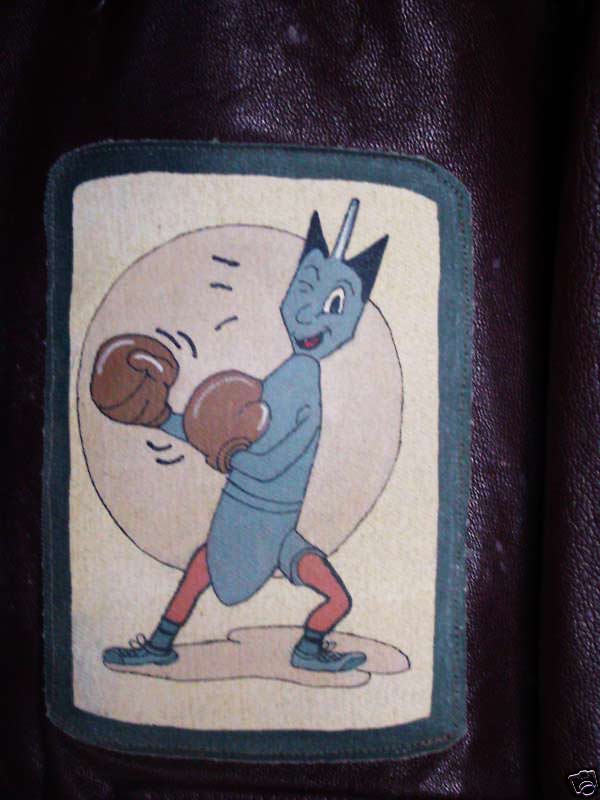 I am trying to find my grandfather’s WWII bombers jacket that he wore in 1945. My grandmother got rid of it many years ago and my mother would love to have it back in the family. I saw a picture on your site of a patch with a bomb wearing boxing gloves. This was the insignia of my grandfather’s squad. Do you actually have a jacket with that patch? He was one of Mac’s Goldbricks crew on the back of the jacket and the name on the front is Jimmy. Please help me you if you can. Thanks!