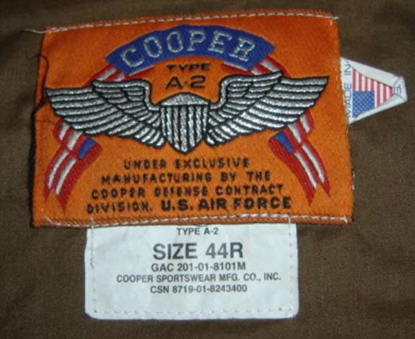 All A-2 jackets had several distinguishing characteristics: no have hand warmer compartments, a shirt-style snap-down collar, shoulder straps, knit cuffs and waistband, a back made of a single piece of leather and a silk or cotton inner lining with a leather hang strap.