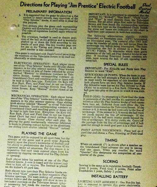 This isn’t the same as the electric football that most people think of. The one I had when I was a kid was completely different. But still, I had it and loved it. It is hard to explain but I found the rules online and put a picture somewhere on this page.