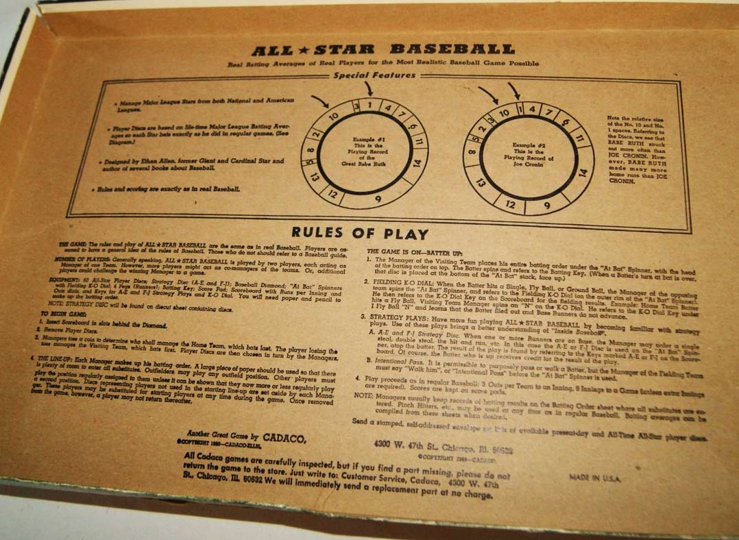 All-Star Baseball by Cadaco is hands-down one of my all time favorites. I have put literally hundreds of hours into playing this game. I learned playing this game from my father — who learned it from his father.