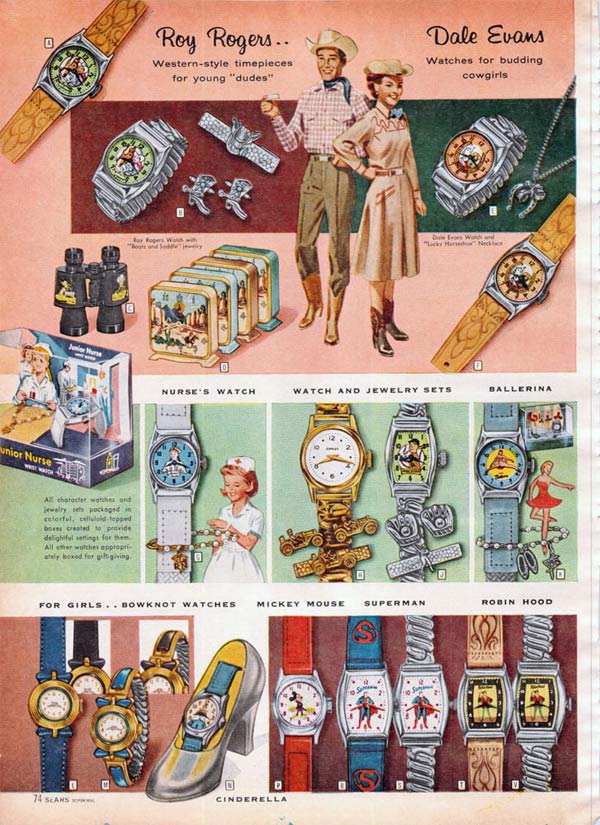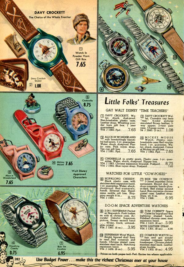 Children had licensed watches of their favorite Disney characters. They also had Alice in Wonderland, Superman and Davy Crockett watches, among several others.