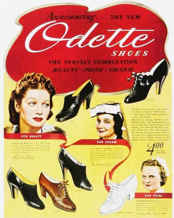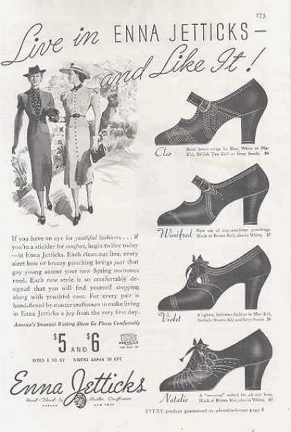 Women love their hats. In 1931, they are deep and close-fitting with both large and small brims, and women liked them to cover one eye. Women wear their hair a little longer and loosely waved with a side part. Fashionable shoes include the black silk style with ankle strap and the white suede style with a T-strap.