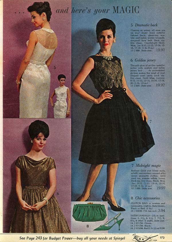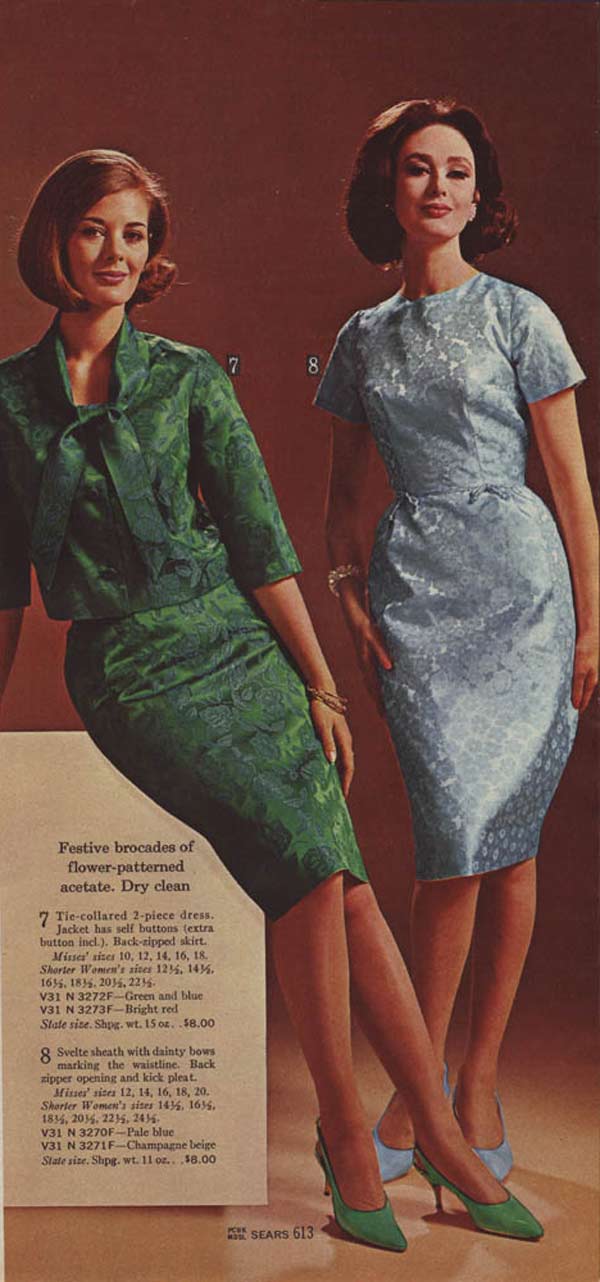 Popular dress styles included brocades, crepe, shear and sheath dresses, which for the past 10 years had been enjoying quite a nice run. But as the decade progressed and new fashions emerged, the gap between the fashion savvy and those who weren’t became increasingly wider.
