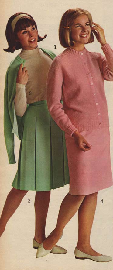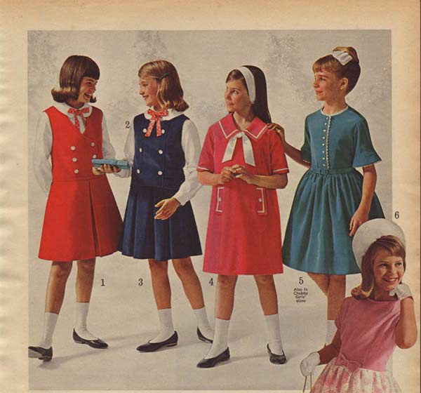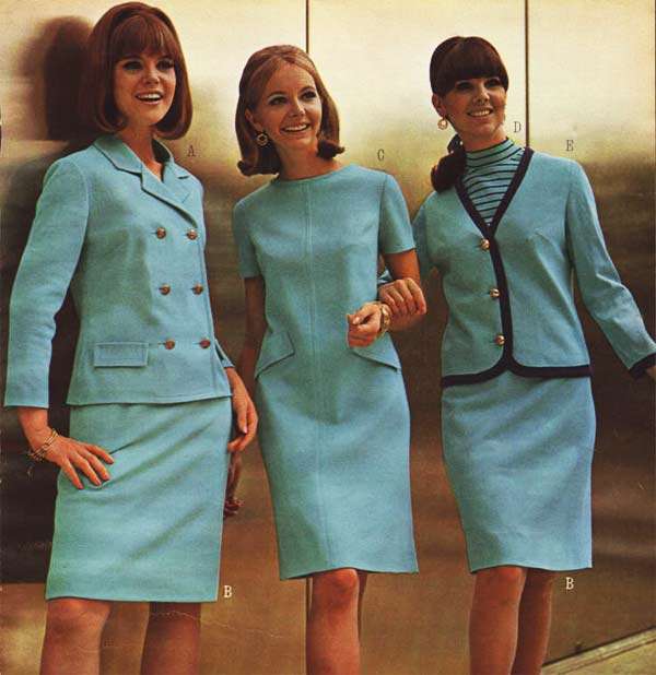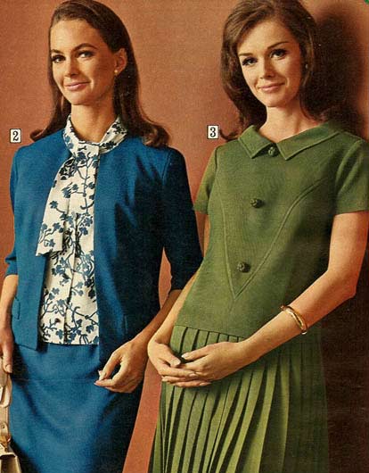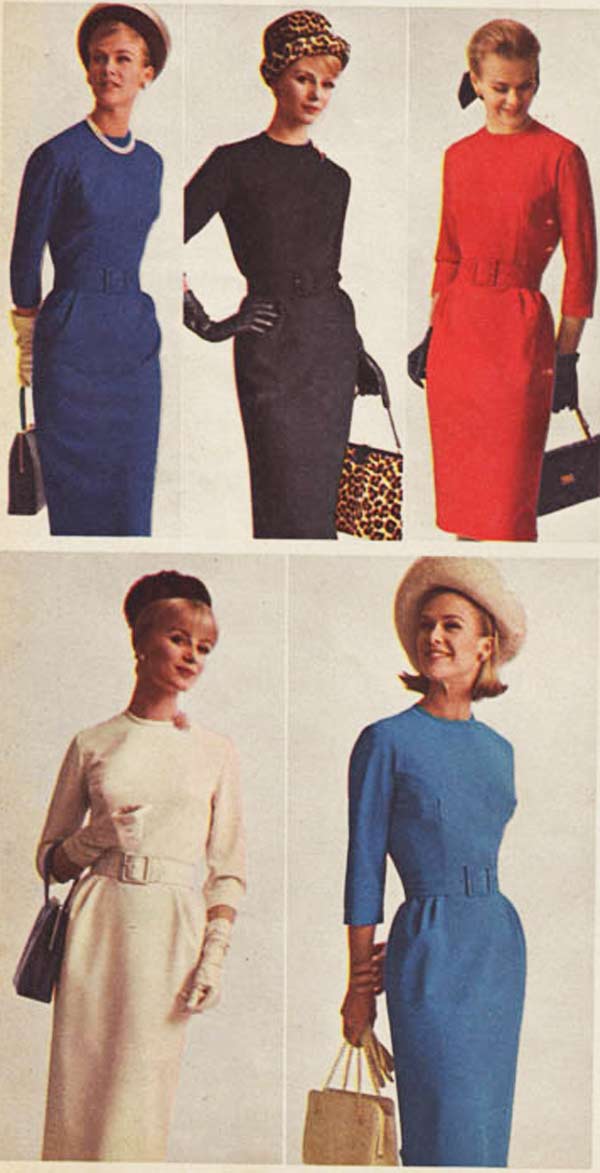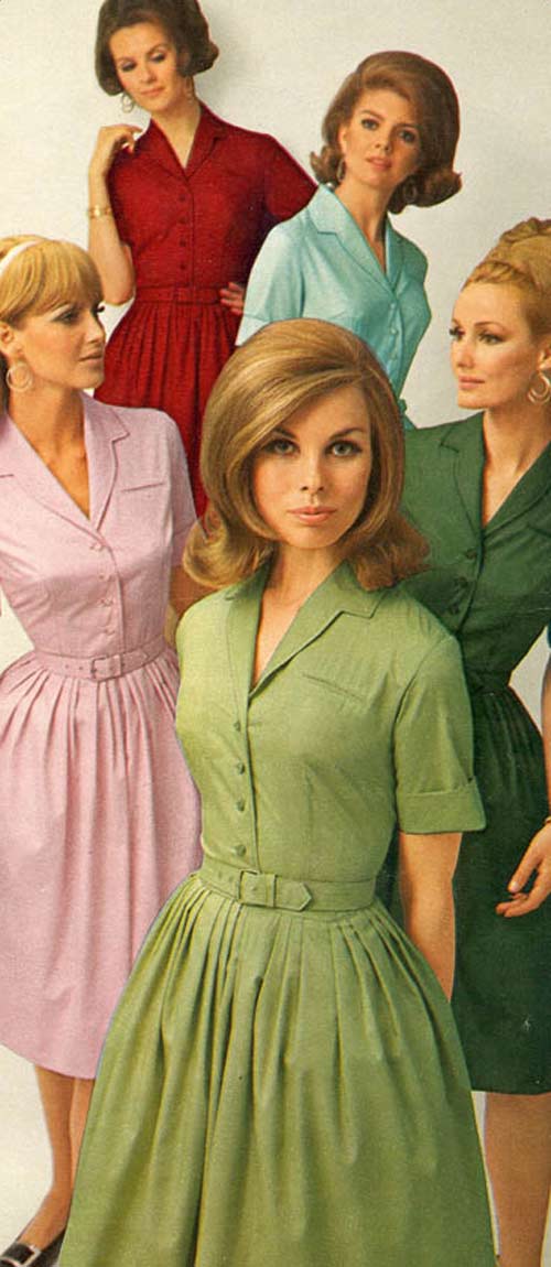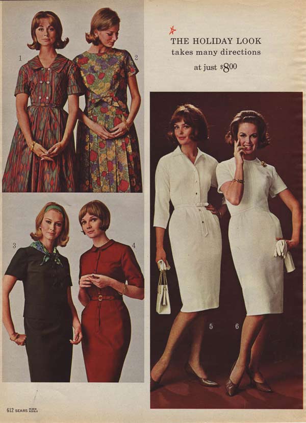 The type of dress worn by women, like most everything else in the sixties, changed drastically from the beginning of the decade to the end. Although that is certainly more true of younger women than the older set, who were perfectly fine with their late 50s-era dresses and long skirts.