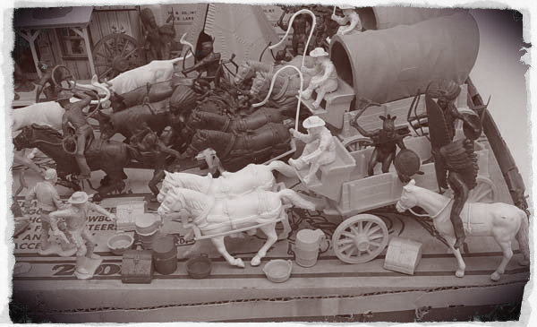 There are 20 Gray Figures, 14 Brown Indians, 4 Brown Cowboys, 4 Cream Color Men – which all total 42 Figures.