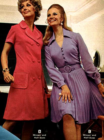Belts were a very popular accessory to a 1970s dress. As were bows, necklaces and jackets. Other dresses had dramatic collars.