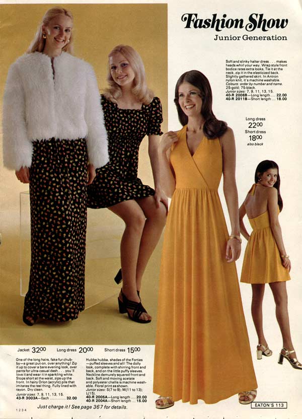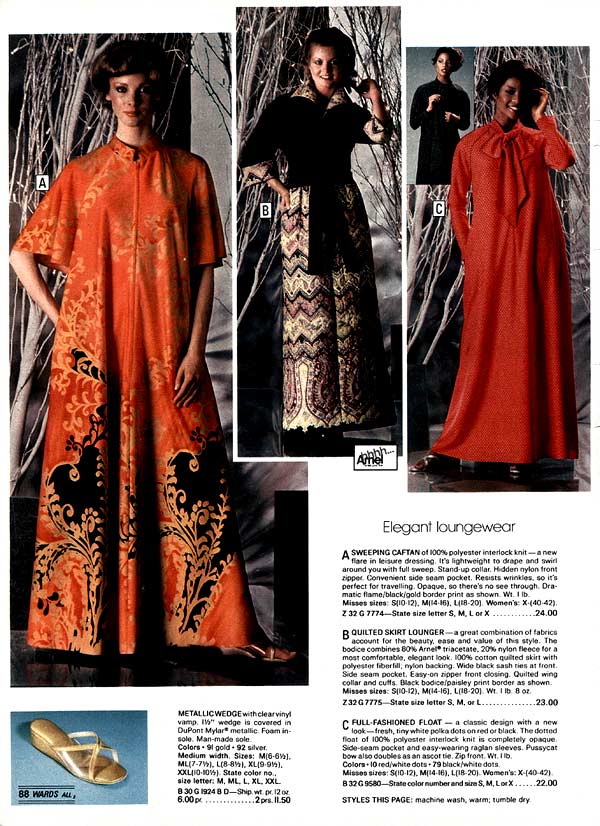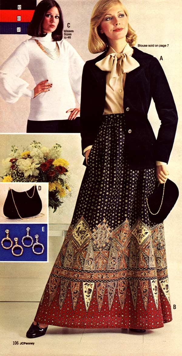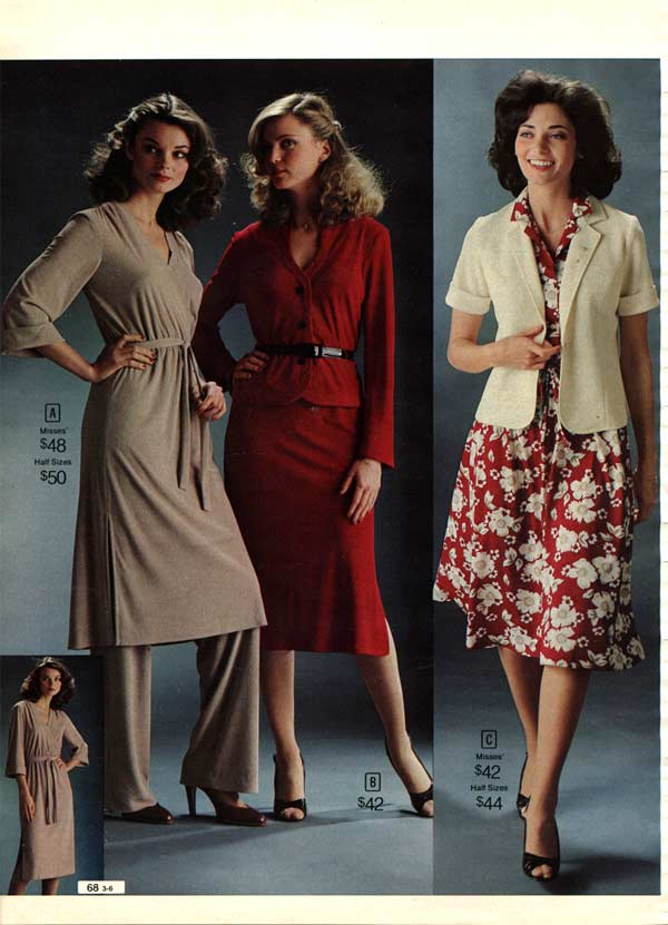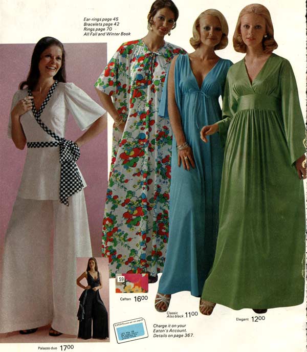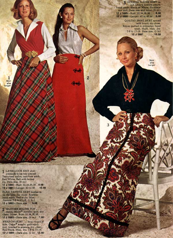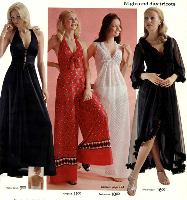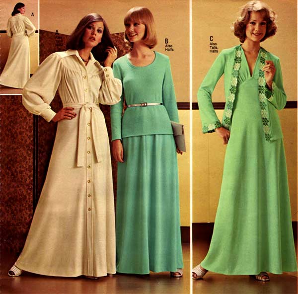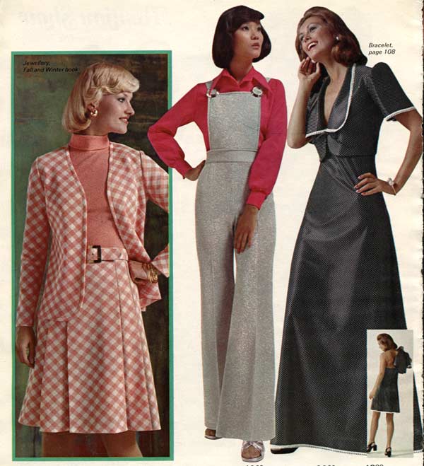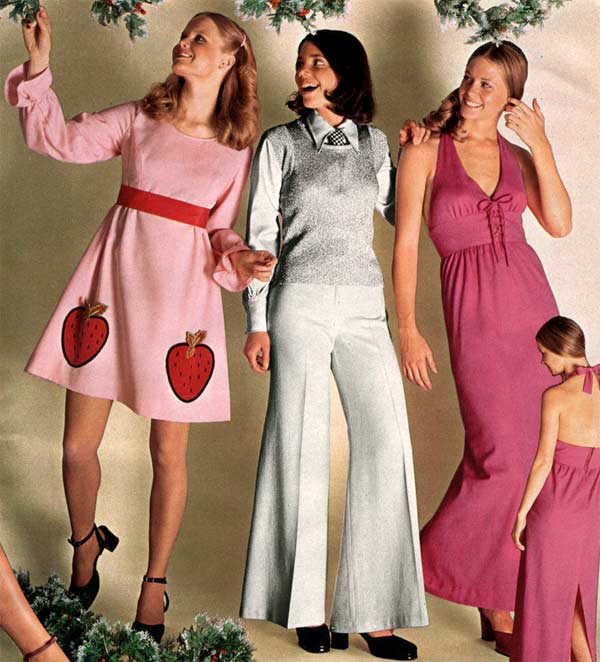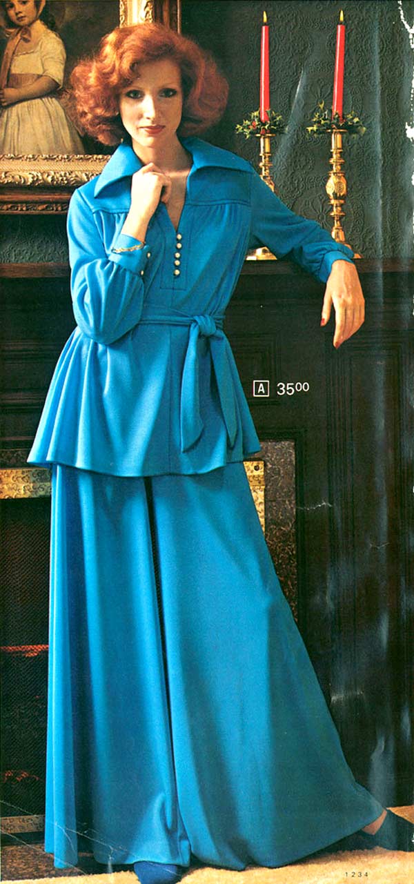 One thing that is impossible to miss while studying 1970s fashion: women wore pants more than they wore dresses. As the decade wore on, page after page of catalogs are filled with different types of women’s pants. For everyday life, the dress had taken a back seat to pants (aka trousers, slacks) — a trend that continues to this day.