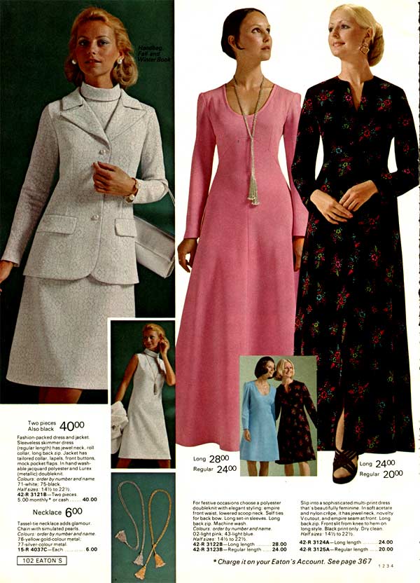 Designers had and used every fabric at their disposal and they were very experimental. The common dress was typically some kind of blend. Knit dresses were very popular throughout the 1970s.