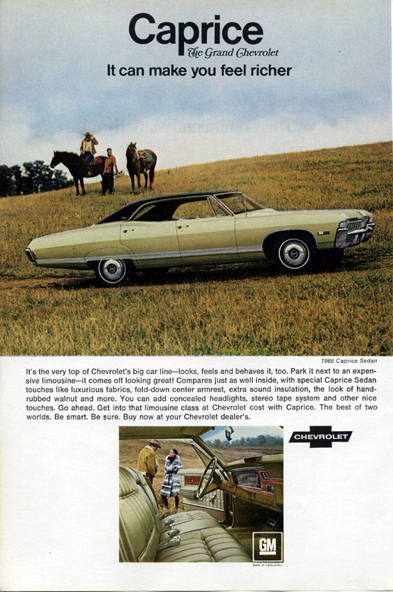 Prices rose slightly, but the biggest change was the length of cars. Luxury and family sedans were longer in 1968 than ever before, with new models featuring flowing bodies, longer hoods and much nicer interiors. New options included heated rear-windows and self-adjusting anti-skid brake systems. Headrest were a new feature on all cars, required by government safety standards.