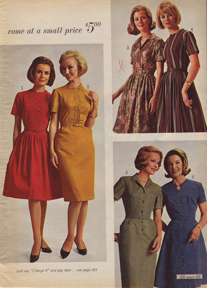Women’s fashion trends in the 1960s swung wildly from one end of the spectrum to the other. The early 1960s were marked by box dresses and 1950s fashions. In the mid-1960s, fashion began to take cues from London and the waistline reappeared. But the late sixties had a mind of their own!