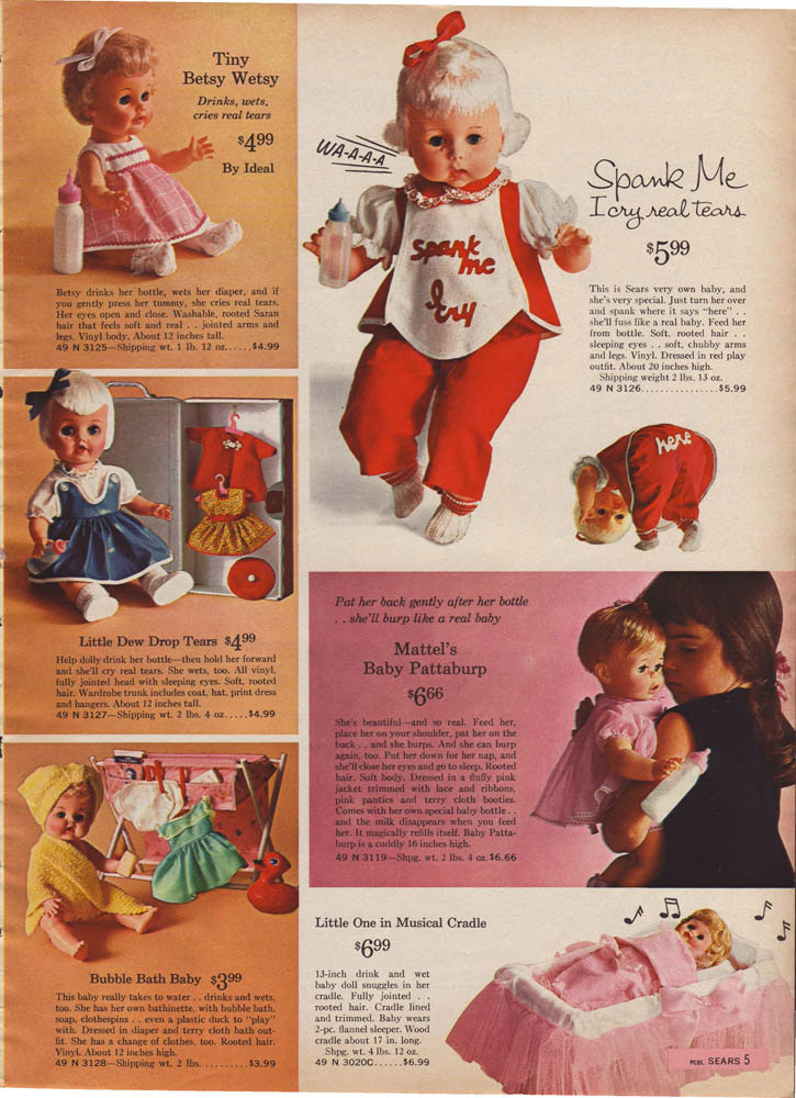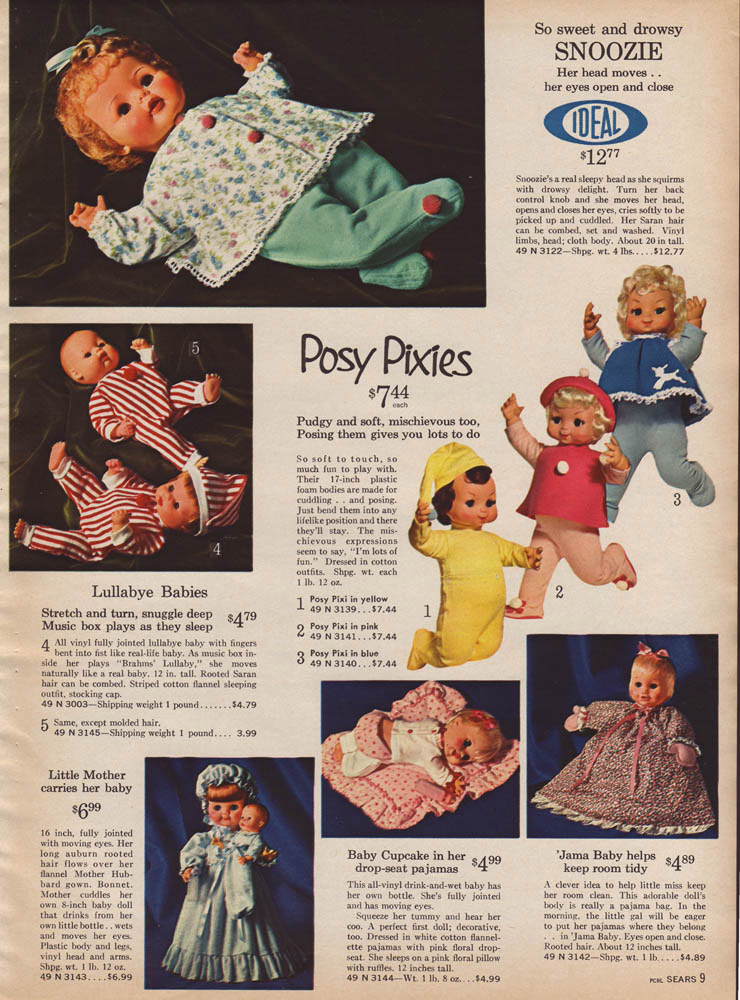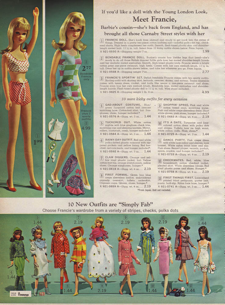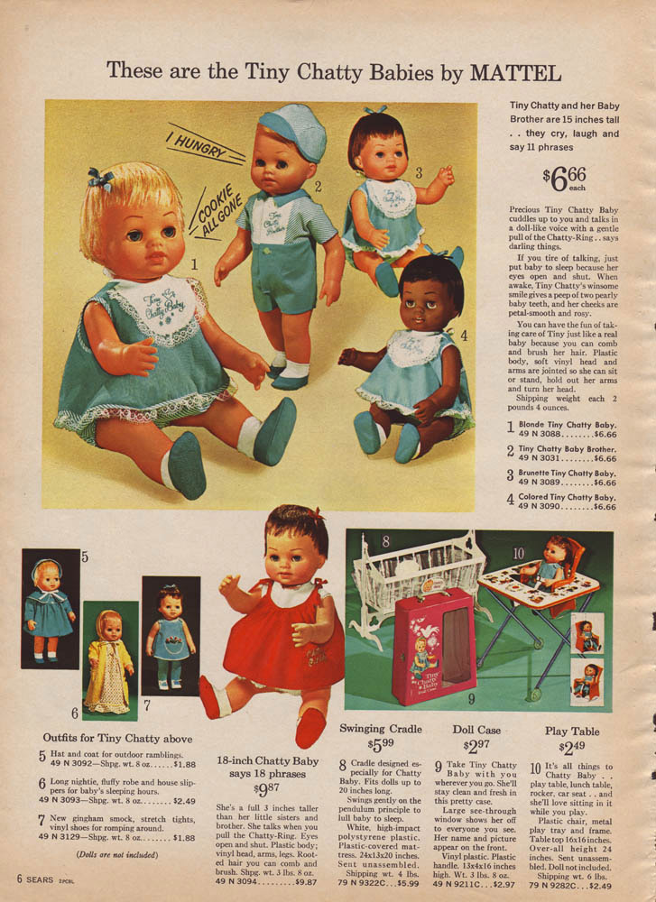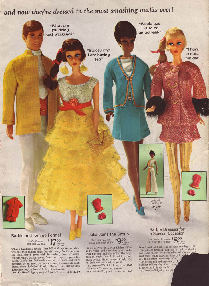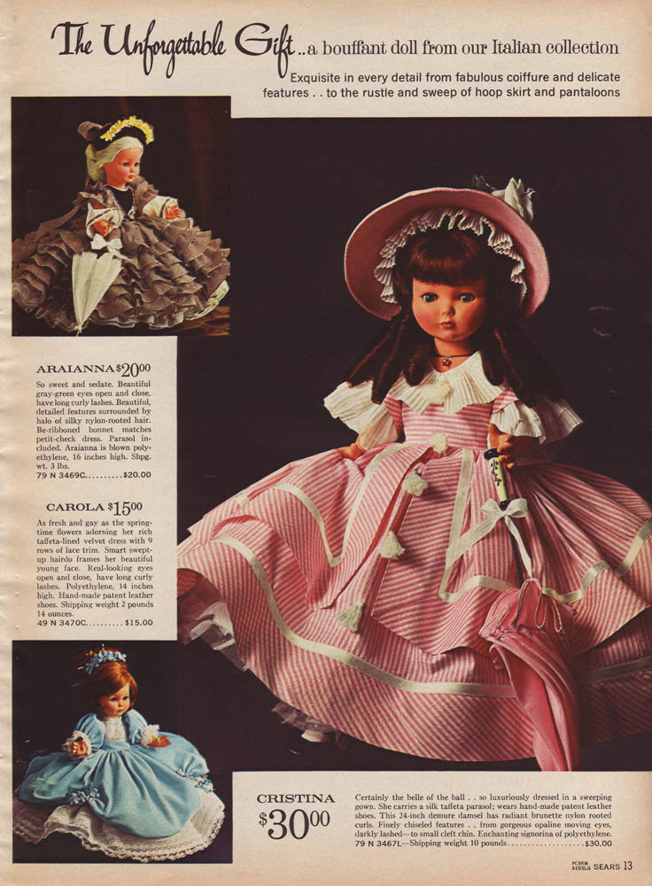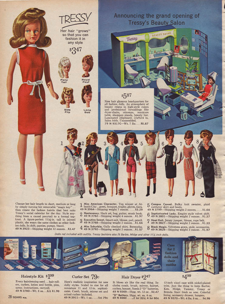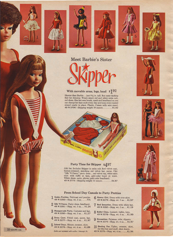 Dolls returned to the more conventional. The high-fashion doll, typified by Barbie, waned in popularity and as Christmas approached, was being supplanted by Skipper, billed as Barbie’s little sister.