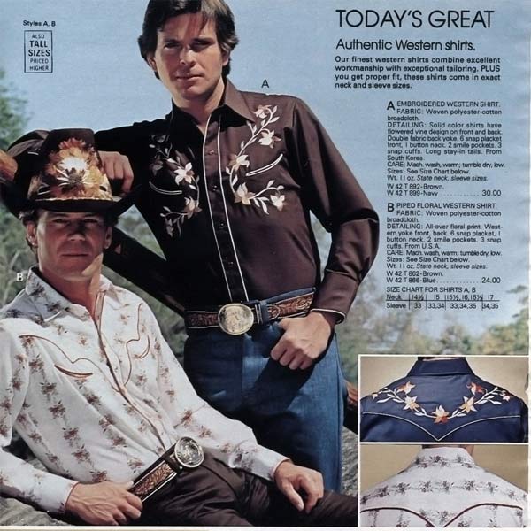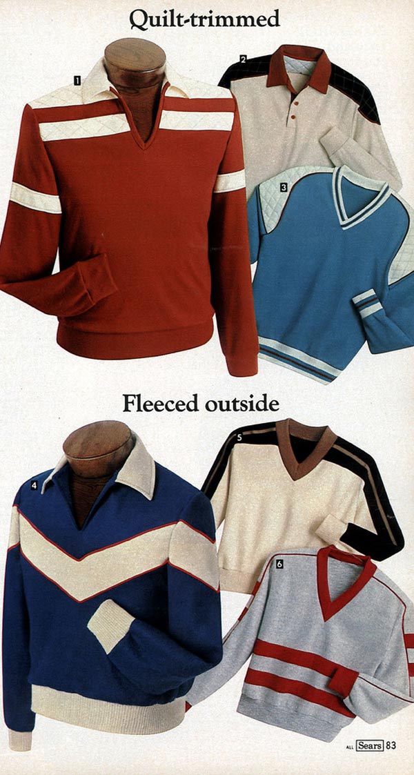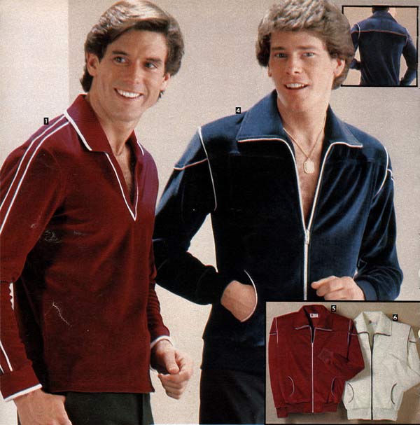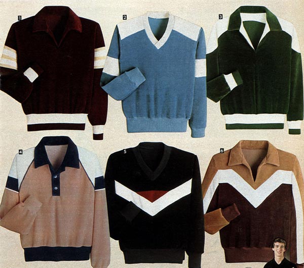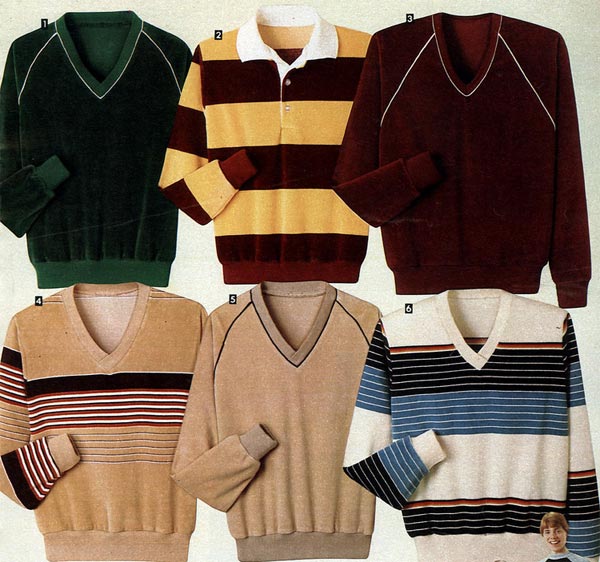 Men in the early 1980s loved wearing long sleeve velour shirts. Wrangler and Levi’s were the jeans makers of choice. Turtlenecks were incredibly popular throughout the decade, especially when worn under an wild-colored thick, itchy sweater.
