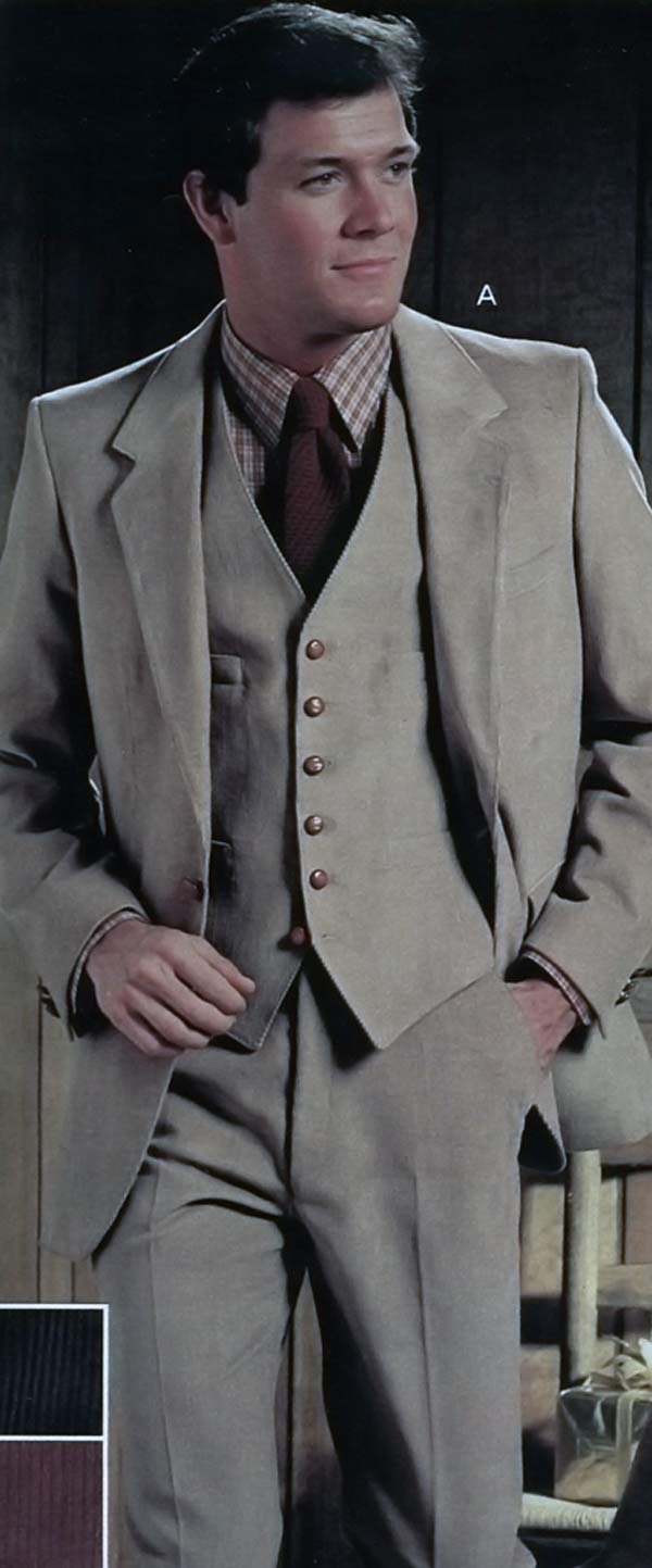 Men’s suits were relatively conservative, seemingly the only clothing in the eighties that wasn’t drowned in bright colors.