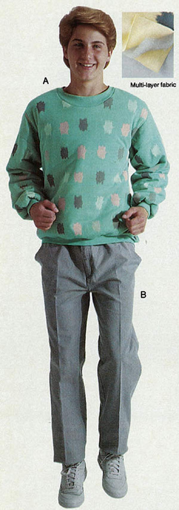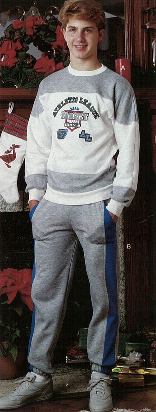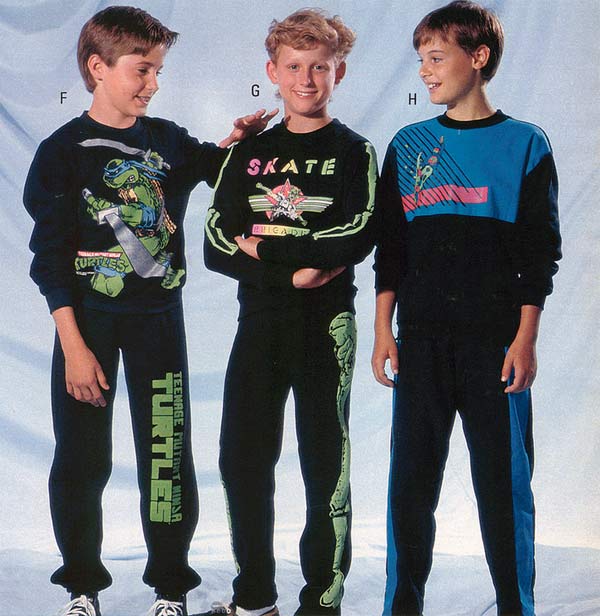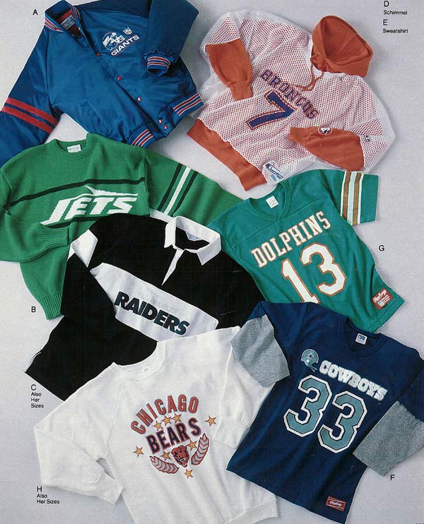 Activewear was a popular choice for men and boys alike. Matching sweatpants and sweatshirts flew off the shelves for the entire decade. Especially sportswear that supported pro sports teams. NFL-licensed clothing dominated schoolyards across the United States.