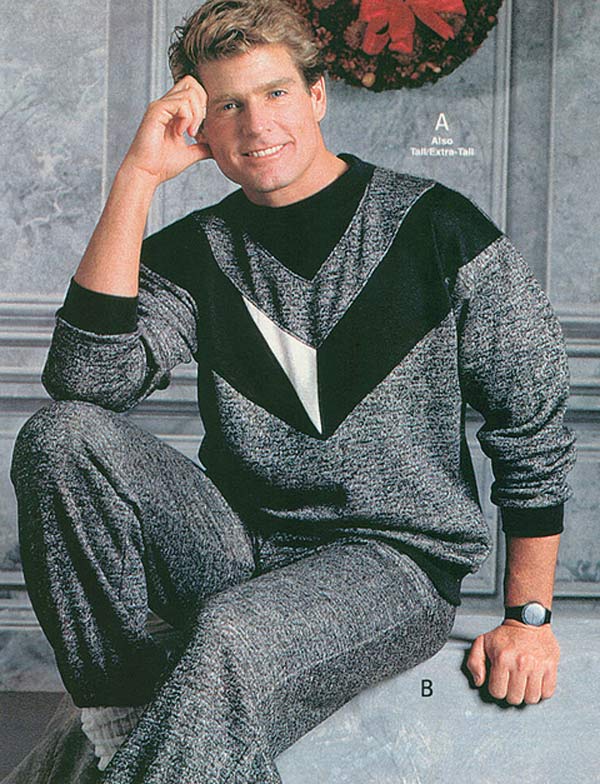 Men’s clothing in the eighties was snug fitting and comfortable. Soft fabrics were everywhere and, while they clothes were still tight compared to today, they weren’t skin tight like the seventies.