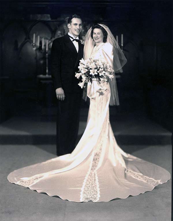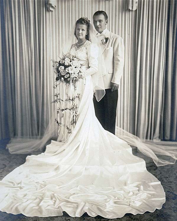 But don’t get me wrong, many wedding dresses in the 1940s had flowing trains that went on for days. Especially between 1940-1942.