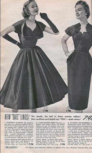 First example? When sitting down, many 1950s dresses make the shape of a perfect circle. Some people call those “circle dresses.”