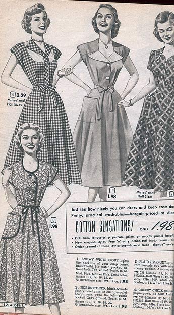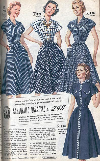 Dresses from the 1950s are easily spotted. The hemline stops around the knee, they look best over a stiff petticoat, and they were a lot of fun to twirl in!