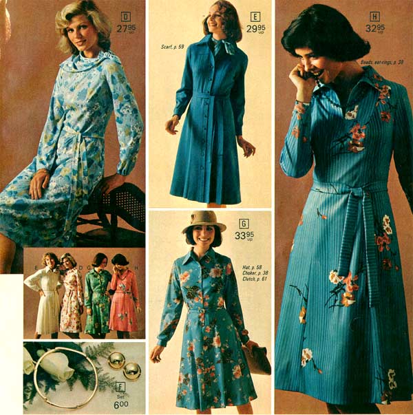 One thing that is impossible to miss while studying 1970s fashion: women wore pants more than they wore dresses. As the decade wore on, page after page of catalogs are filled with different types of women’s pants. For everyday life, the dress had taken a back seat to pants (aka trousers, slacks) — a trend that continues to this day.