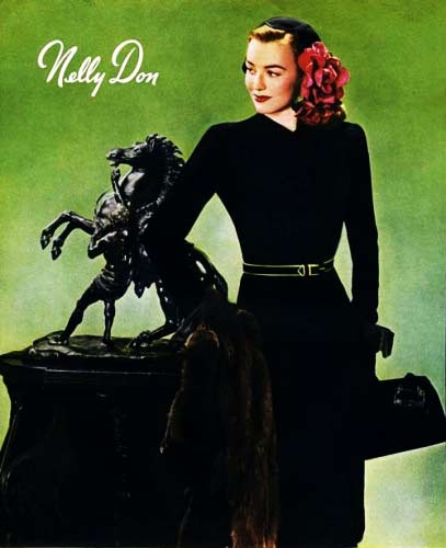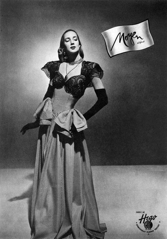 Nylon lingerie appeared in sufficient quantities to be on display instead of only under the counter. Corsets in deep blue and other unconventional colors were a welcome proof that better supplies were making fashion experiments possible.