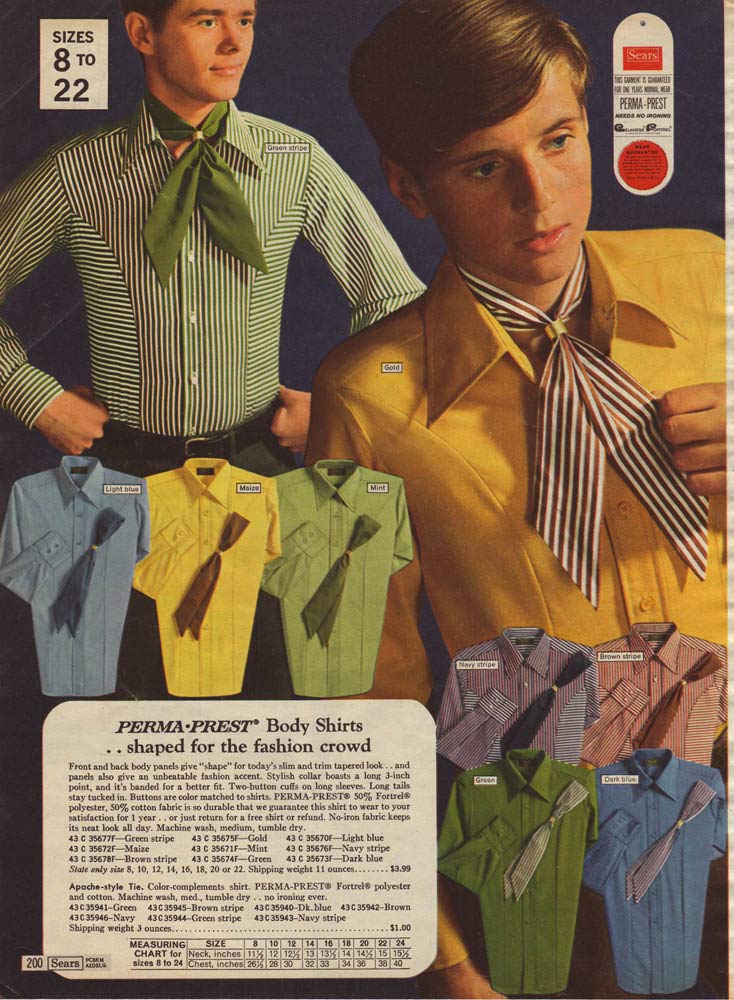 The late 60s brought a whole new range of styles for men. In 1969 seeing a man wear a scarf was commonplace. But it wasn’t a big, wool scarf of today. It was a silk scarf that was tied like a loose tie. Check out the pictures below. It was a very effeminate look compared to fashions of the past.