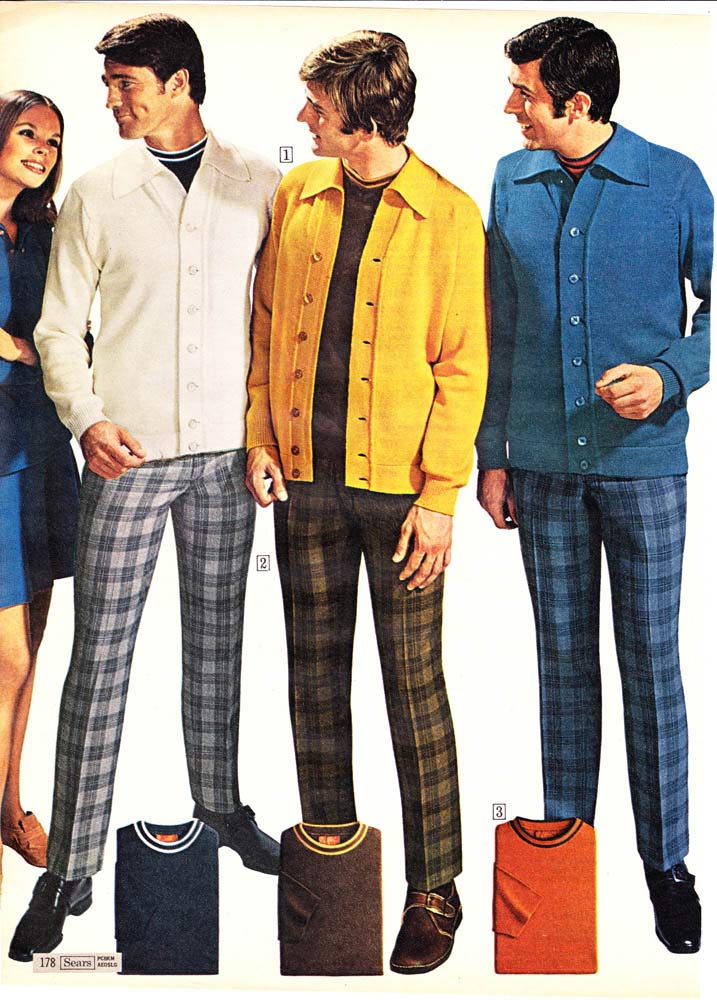 Sporting a tailored look, young couples liked to dress in similar, if not identical clothing. A quick glance through a 1971 catalog backs this up, for it is hard to miss the countless pages of his & hers matching sets.