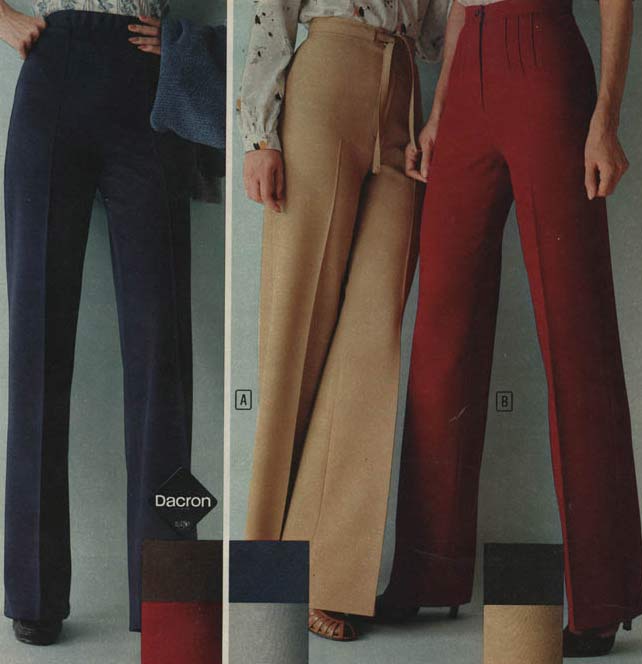 I was in junior high and high school in the 70s and pants were definitely tight. But polyester was not the fabric of choice, unless you were middle-aged, old, or not hip (at all). All things natural were favored, including fabrics. Cotton was very, very in.